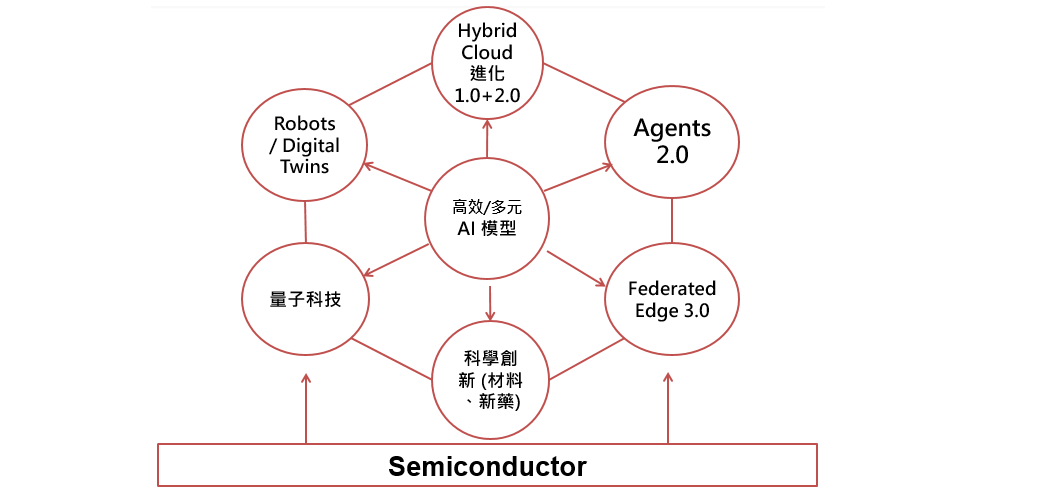 目前美國企業AI使用率僅近10%,五大科技公司大幅提高資本支出建置算力,預估未來數年AI科技可望蓬勃發展,而在半導體製程進步的帶動下,更高效能與多元化的AI模型,將進一步提升AI科技各個重要面向。