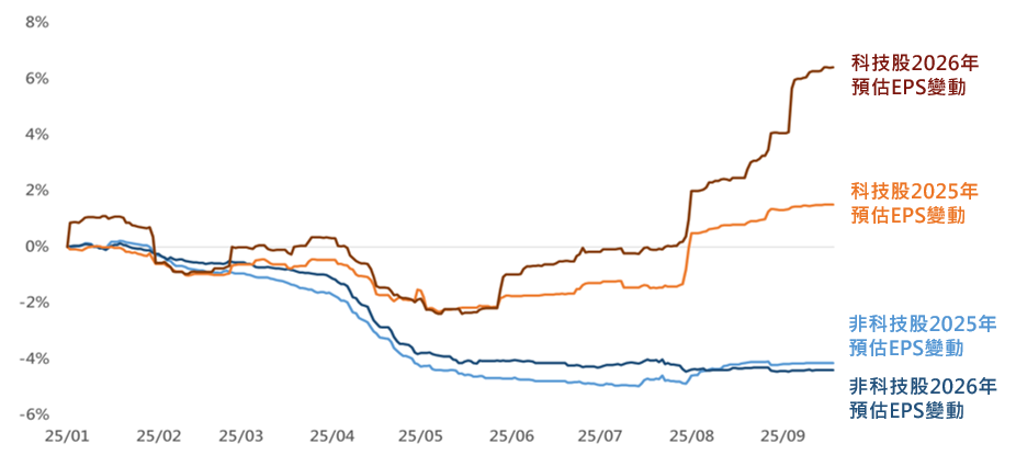 整體而言,溫和降息環境有利股市,且通常代表景氣沒有衰退危機,現階段從基本面觀察,各產業獲利成長動能良好,全球股市企業獲利亦保持成長,根據Bloomberg等資料預期,2026年全球企業獲利成長約13%,而企業獲利上修後,較高的獲利增速可望支持較高的評價,而現階段情緒面指標並未過熱、市場廣度良好,股市多頭趨勢仍在。