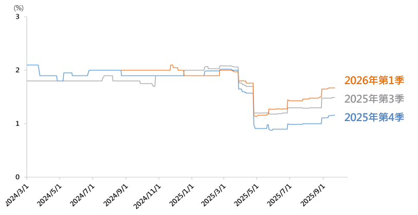 事實上,Fed在2025年9月降息一碼,至明(2026)年底有機會再降息三碼,Fed主席並強調,目前是基於風險管理的降息,並非經濟瀕臨衰退。
