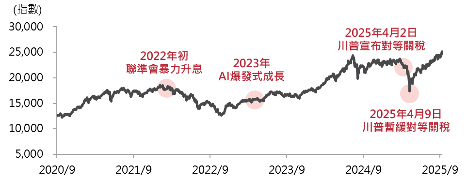 以上資料為舉例說明,不代表未來實際績效。資料來源:Bloomberg,2020/9/10~2025/9/10。